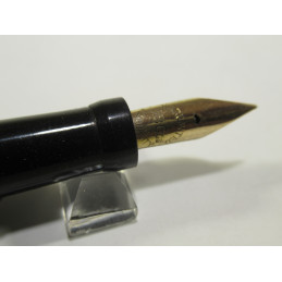 Stylo plume américain MORRISON, en ébonite noire, overlay plaqué, longueur capuchon fermé 132 mm, diamètre du capuchon 12 mm, plume or 18K « WARRANTED – 18 CT – 1st QUALITY », système de remplissage à levier fonctionnel, sac absent, marquage sur le levier et sur le clip « MORRISON’S », bon état général, sans garantie pour être utilisé, pour collection.