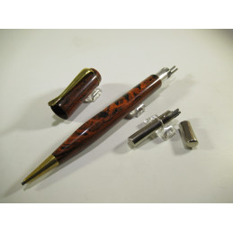 Porte-mine de fabrication française, CIRCA 1930, sans marque apparente, en ébonite rouge et noire, longueur : 110 mm, diamètre du corps: 10 mm , fonctionne parfaitement, livré avec un étui de mines. Très bon état général, pour collection ou pour écrire.