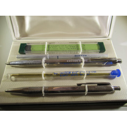 Coffret stylo à bille et porte-mine CRITERIUM, CIRCA 1960, neuf, publicité de la banque Société Générale, porte mine fonctionnel avec mines fournies, stylo à bille avec cartouches présentes mais sèches. Coffret en très bon état, pour collection.