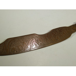 Coupe papier réalisé dans les tranchées pendant la première guerre mondiale avec la couronne en cuivre d’un obus. Gravure sur la lame « NOUVRON 1914 – 1915 ». Vous trouverez les explications de cette bataille sur le site : https://fr.wikipedia.org/wiki/Martyrs_de_Vingré