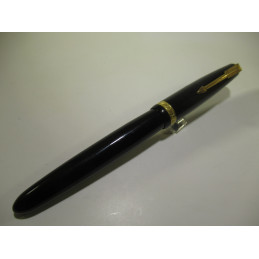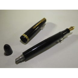 Stylo plume PARKER DUOFOLD, plume or « PARKER – 18 K – France », couleur noir, système de remplissage par poussoir qui fonctionne, sac absent, longueur fermé : 135 mm, diamètre capuchon : 13 mm, très bon état général, pour collection ou pour écrire.