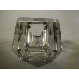 Encrier en cristal carré, fabrication inconnue. Avec un couvercle rotatif. Très bon état général.