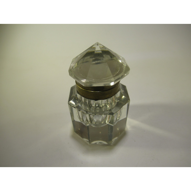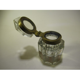 Petit encrier en cristal hexagonal, fabrication inconnue probablement française. Excellent état général.