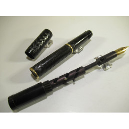Stylo plume WATERMAN 42 1/2, plume or rentrante « WATERMAN’S - IDEAL – REG. U.S. – PAT. OFF. – 2 – MADE IN U.S.A », en ébonite noire avec 2 bagues en or 18K, sur le corps du stylo « WATERMAN’S – REG. US – IDEAL – PAT. OFF. - FOUNTAIN PEN », marquage sur le bout du corps « WATERMAN’S – REG. US - PAT. OFF – MADE IN USA » et « 42 ½ », excellent état général, fonctionnement de la vrille parfait. Livré dans son étui d’origine avec le compte-goutte de remplissage (le caoutchouc est sec). Parfait pour collection.