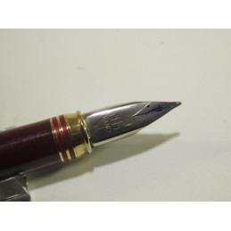 Stylo plume DANIEL ECHTER laqué rouge bordeaux avec des stries dorées, fabrication française, plume inox en bon état « DH France » , système de remplissage à cartouche présente dans le stylo, testé et fonctionnel (voir photos), bon état général, pour collection ou pour écrire. Longueur avec capuchon : 140 mm.
