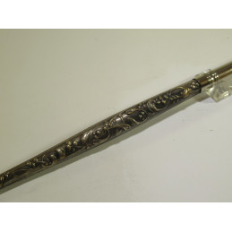 Porte-plume plaqué argent avec un décor floral. En bon état. Livré avec 1 plume « oblique » et une petite boite de plumes assorties. Pour apprendre à écrire à la plume ou pour collectionner. Longueur : 175 mm.