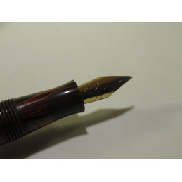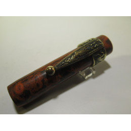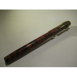 Stylo plume UNIC, en ébonite rouge et noire, plume or d’origine « UNIC – 18Cts - 3 », marquage sur le corps « FOUNTAIN PEN – UNIC – DEPOSE PARIS », très bon état général, longueur avec le capuchon 139 mm, diamètre du corps 11 mm, système de remplissage à levier, sac absent. Pour collection mais peut être remis en service.