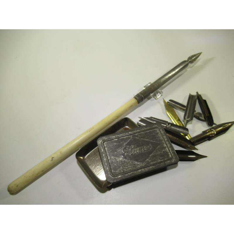 Très ancien porte-plume en os. Fabrication française. Livré avec 1 boite de plumes assorties. Bon état. Pour apprendre à écrire à la plume ou pour collectionner.