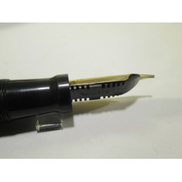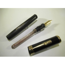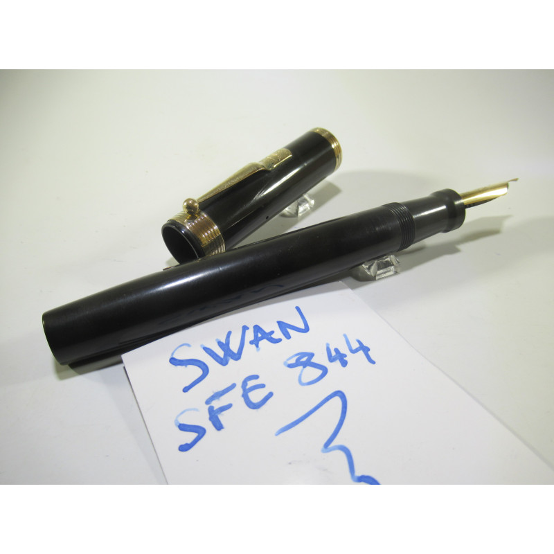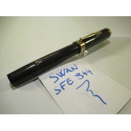 Rare gros stylo plume SWAN ETERNAL, 140 mm capuchon fermé, diamètre du capuchon 16 mm, années 30, gravé sur le corps partiellement effacé « SWAN SELF-FILLER – MABIE TODD & Co LTD – TRADE MARK – MADE IN ENGLAND – ETRERNAL », en ébonite noire, énorme plume or « SWAN ETERNAL – 8 -18 CT – MABIE TODD & Co – FABon ANGLAISE », Marquage sur le capuchon « SWAN SFE 844 ». Système de remplissage à levier, sac présent et fonctionnel. Très bon état général, testé, pour être utilisé ou pour collection.