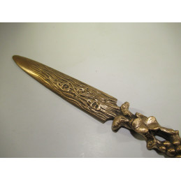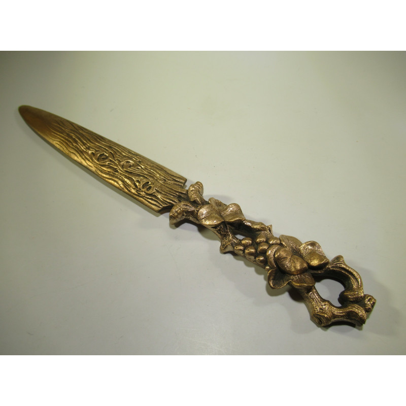 Ouvre-lettre en bronze sculpté avec motifs floraux. Fabrication française début du 20ème siècle. Longueur : 205 mm. Poids 118 grammes.