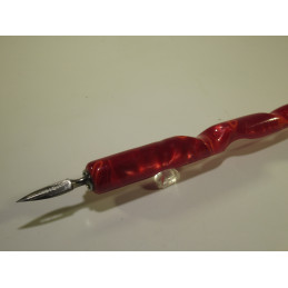 Porte-plume en résine marbrée rouge et rose sculpté en hélice. En très bon état. Livré avec 1 boite de plumes assorties. Longueur sans la plume 163 mm. Pour apprendre à écrire à la plume.