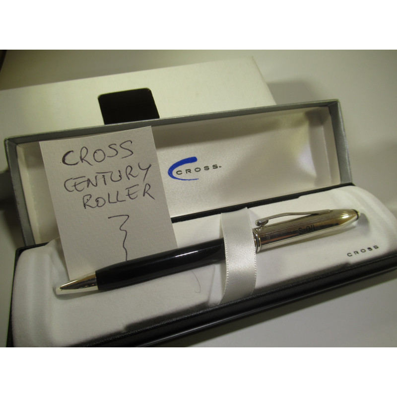 Stylo roller CROSS CENTURY, mécanisme rotatif fonctionnel, capuchon en argent, gravure sur le capuchon « S-OiL » (une société pétrolière asiatique), recharge stylo en état, excellent état général, pour collection ou pour écrire. Livré dans son étui d’origine avec sa notice d’utilisation.