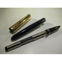 Stylo plume PARKER 51, bleu marine et capuchon plaqué or, plume or, système de remplissage par convertisseur présent dans le stylo, très bon état général. Pour collection ou pour être utilisé. Si vous souhaitez l’utiliser demandez-moi de le mettre en service avant de vous l’expédier.