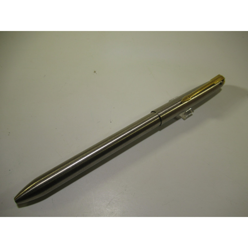 Stylo bille PARKER 4 couleurs Flighter de Luxe produit dans les année 80. Gravure sur la base du capuchon « PARKER – MADE IN FRANCE », très bon état général. Modèle peu courant, pour collection ou pour écrire. Le mécanisme est original, il suffit de mettre la couleur souhaité vers le haut en tenant le stylo à plat et de pousser le capuchon, la couleur correspondante sort pour être utilisée.
