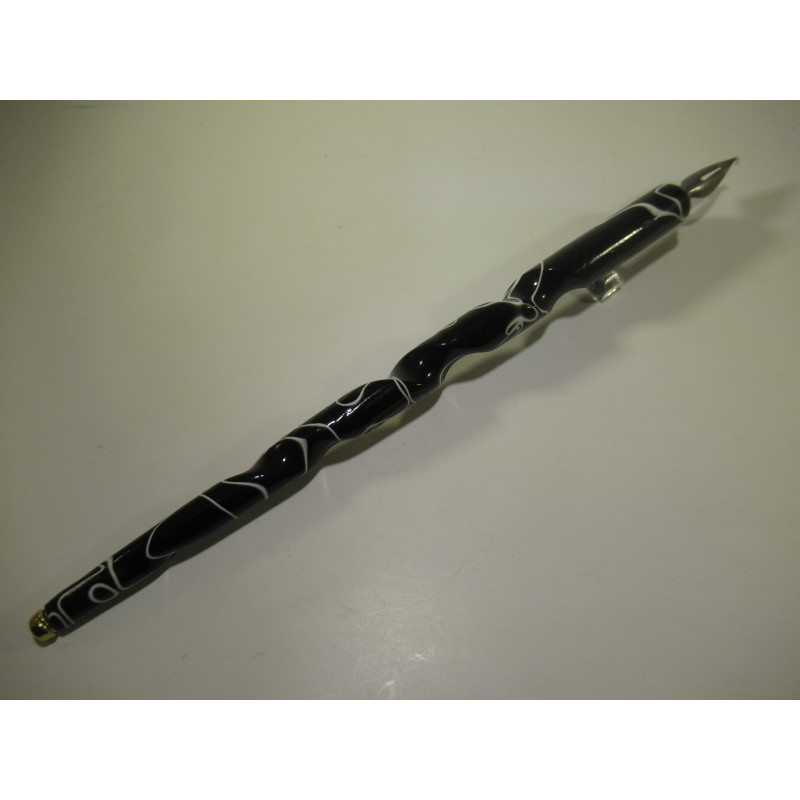 Porte-plume en résine marbrée noir et blanc sculpté en hélice. En très bon état. Livré avec 1 boite de plumes assorties. Longueur sans la plume 163 mm. Pour apprendre à écrire à la plume.