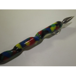 Porte-plume en résine marbrée multicolore sculpté en hélice. En très bon état. Livré avec 1 boite de plumes assorties. Longueur sans la plume 163 mm. Pour apprendre à écrire à la plume.
