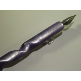 Porte-plume en résine marbrée violet sculpté en hélice. En très bon état. Livré avec 1 boite de plumes assorties. Longueur sans la plume 163 mm. Pour apprendre à écrire à la plume.