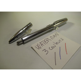 Stylo bille 3 couleurs WATERMAN, chromé, marquage sur le clip « WATERMAN », fonctionnement parfait, les cartouches sont présentes et fonctionnelles, bon état général, pour collection ou pour écrire.