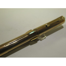 Rare stylo bille 4 couleurs JIF (WATERMAN), plaqué or, marquage sur le clip « JIF », marquage sur le corps « DOUBLE OR LAMINE », fonctionnement parfait, les cartouches sont présentes et fonctionnelles. Quelques traces d’usage mais bon état général. Pour collection ou pour écrire.