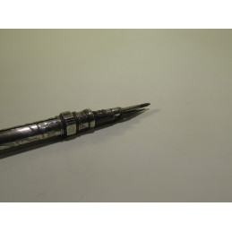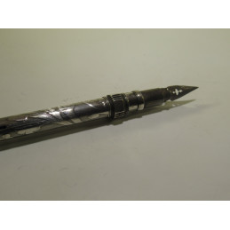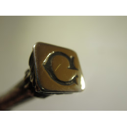 Combinaison d’un porte-plume et d’un porte-mine en argent. Cet ensemble est composé d’un cylindre creux à l’intérieur duquel se trouve un porte-plume et un porte-mine qui peuvent alternativement sortir au moyen de deux bagues coulissantes. Chacune de ces bagues permet de faire sortir soit le porte-plume soit le porte-mine. Le bout évasé de cet objet pouvait être gravé et servant ainsi à faire une empreinte sur un cachet de cire chaude. Celui-ci est gravé d’un « G ». Très bel objet de la fin du 19ème siècle. Longueur fermé : 112 mm, diamètre du corps : 7mm.