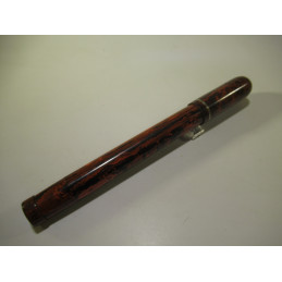 Stylo plume rentrante LE MERLE BLANC fabriqué en Angleterre par la société SWAN. Gravé sur le corps « LE MERLE BLANC – MADE BY SWAN PEN PEOPLE – FABRIQUE EN ANGLETERRE », en ébonite rouge et noire avec le top du capuchon blanc. Mécanisme fonctionnel, plume or « WARRANTED – 18 CT – 1st QUALITY », longueur fermé 126 mm, diamètre capuchon 13 mm. Très bon état général, pour collection. Sans garantie pour être utilisé.