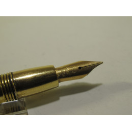 Stylo plume UNIC lady, habillage overlay plaqué or, plume or « UNIC – 18Cts IRIDIUM – 1P », marquage sur le capuchon « UNIC – DEPOSE », probablement jamais utilisé, très bon état général, longueur avec le capuchon 104 mm, diamètre du corps 9 mm, système de remplissage à poussoir fonctionnel avec sac en état. Pour collection ou pour être utilisé.