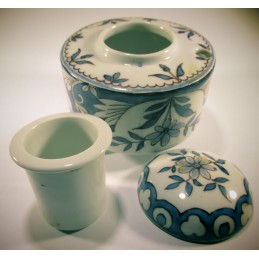 Encrier en faïence fabrication française de forme ronde. En très bon état.