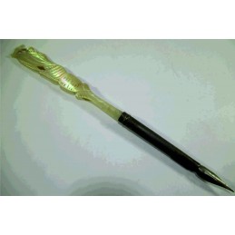 Porte-plume en nacre naturelle. Sculpté en forme de bateau. En très bon état. Livré avec 3 plumes. Pour apprendre à écrire à la plume ou pour collectionner.