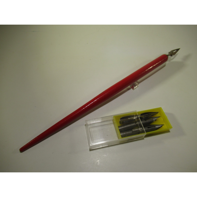 Porte-plume ancien en bois laqué rouge. Fabrication française. Livré avec 1 boite de plumes assorties. Longueur sans la plume : 170 mm. Très bon état. Pour apprendre à écrire à la plume ou pour collectionner.