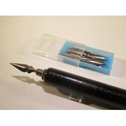 Gros porte-plume en galalithe. La galalithe (« pierre de lait », du grec ancien gála, « lait », et / líthos, « pierre ») est un polymère thermodurcissable issu de la caséine et une des premières matières plastiques avec l’ébonite utilisées pour la fabrication d’objets d’écriture au début du 20ème siècle. Une publicité est gravée sur le côté : « PIA – PINCHOT. Corderie – Beauvais ». Longueur : 195mm. En très bon état. Livré avec 1une boite de plumes assorties. Pour apprendre à écrire à la plume.