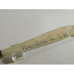 Porte-plume américain en nacre naturelle. Sculpté avec une tête d’indien. Marquage « Rye Beach N.H. » (New Hampshire). En très bon état. Livré avec une petite boite de quelques plumes assorties. Pour apprendre à écrire à la plume ou pour collectionner. Longueur : 165mm.