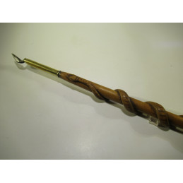 Grand porte-plume sculpté à la main. Motif d’une vipère enroulée sur le porte-plume. En bois massif avec virole en laiton. Longueur 235mm. Livré avec une plume « baïonnette » et une boite de plumes assorties.