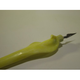 Porte-plume ergonomique fabriqué dans le Jura dans les années 50-60 en plastique injecté. Conçu pour apprendre aux enfants à tenir le porte-plume avec chaque empreinte des 3 doigts : pouce index et majeur. Livré avec 3 plumes assorties. Pour apprendre à écrire avec un porte-plume ou pour collectionner.