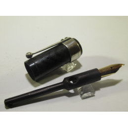 Stylo plume WATERMAN 42, plume or rentrante « WATERMAN IDEAL – NEW YORK – 2 », en ébonite noire, bon état général, fonctionnement de la vrille parfait. Marquage sur le corps « WATERMAN’S – REG US – IDEAL – PAT. OFF. – FOUUNTAIN PEN – UNITED STATES OF AMERICA ». Marquage sur le bout « 42 ». Livré dans son étui d’origine avec une pipette dont la partie en caoutchouc est sèche et avec une agrafe « IDEAL – PARIS - DEPOSE ». Pour collection. Sans garantie pour utilisation.