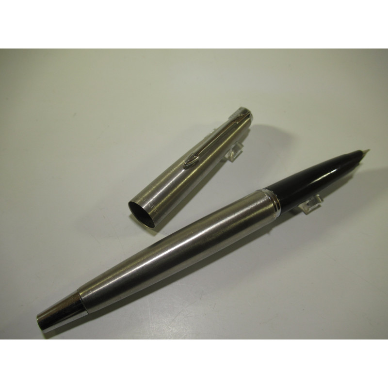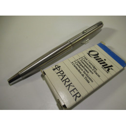 Stylo plume PARKER 45, en inox brossé, plume acier M, longueur avec capuchon : 136 mm, diamètre du corps : 11 mm. Livré avec une boite de cartouches. Très bon état, pour collection ou pour écrire. Si vous souhaitez l’utiliser demandez-moi de le mettre en service avant de vous l’envoyer.