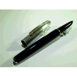 Stylo plume WATERMAN FLASH LADY, remplissage par cartouche non présente, plume acier capotée, couleur noir, marquage sur le clip « WATERMAN», très bon état général, longueur avec le capuchon : 121 mm, diamètre du corps : 10.5 mm, pour collection, aucune garantie pour utilisation.