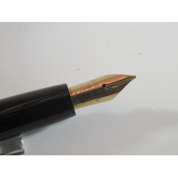 Stylo plume WATERMAN 1960-1970 équipé d’un convertisseur, plume or « WATERMAN’S – 18 Cts – 3 », couleur noir avec capuchon plaqué or « PLAQUE OR G », marquage sur le corps « WATERMAN’S – MADE IN France », marquage sur le clip « WATERMAN ». Longueur avec capuchon 134 mm, diamètre du corps 11 mm, bon état général testé et fonctionnel, pour collection ou pour écrire.