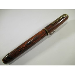 Stylo plume rentrante marque « J.M. PAILLARD », en ébonite rouge et noire, mécanisme fonctionnel, plume or « SEMPER - 2 - UNIS FRANCE – 18C », marquage sur le corps « J.M.P. » presque effacé, longueur fermé 125mm, diamètre capuchon 13.5mm, très bon état général, pour collection. Sans garantie pour être utilisé.