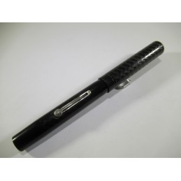 Stylo plume en ébonite noire, fabriqué par la société LA PLUME D’OR qui fabriqua aussi sous la célèbre marque METEORE. 124 mm capuchon fermé, diamètre du corps 11.5 mm, gravé sur le corps « ZODIAC – UNIS France - IRIDIA », plume or « WARRANTED - 18 KT – N° 30 », système remplissage à levier, sac absent, bon état général. Pour collection, sans garantie pour être utilisé.