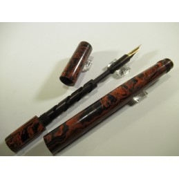 Stylo plume safety EXCELSIOR ( sous-marque de BAYARD ), en ébonite rouge et noire, plume or BAYARD « 18 CT - 35 », marquage sur le corps « EXCELSIOR – FABRICATION BAYARD », mécanisme en parfait état, très bon état général, longueur avec le capuchon 117 mm, diamètre du corps 10.5 mm, pour collection. Sans garantie pour être utilisé.