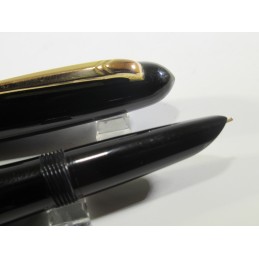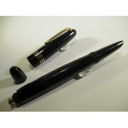 Stylo plume CAPOSTYL de BAYARD, couleur noir, très bon état général, longueur avec le capuchon 136 mm, diamètre du corps 12 mm, système de remplissage à poussoir qui fonctionne, le sac n’est pas présent, plume or 18K. Pour collection. Sans garantie pour être utilisé.