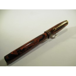 Stylo plume EDACOTO en ébonite rouge et noire, plume or « EDACOTO – 18 Cts – OSMI IRIDIUM », système de remplissage à levier fonctionnel, sac absent, marquage sur le clip « EDACOTO », marquage sur le corps « LA MARQUE DE QUALITE – EDACOTO – MODELE DEPOSE MADE IN FRANCE ». Longueur avec capuchon 108 mm, diamètre du corps 10.5 mm. Bon état général. Pour collection. Aucune garantie pour utilisation.