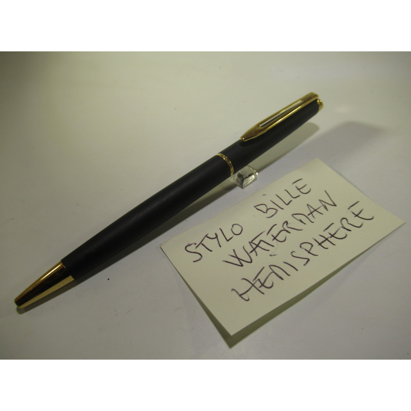 Stylo bille WATERMAN HEMISPHERE mécanisme rotatif, laqué noir mat, recharge fonctionnelle, excellent état, longueur : 131mm, diamètre du corps : 9.5mm. Pour collection ou pour écrire.