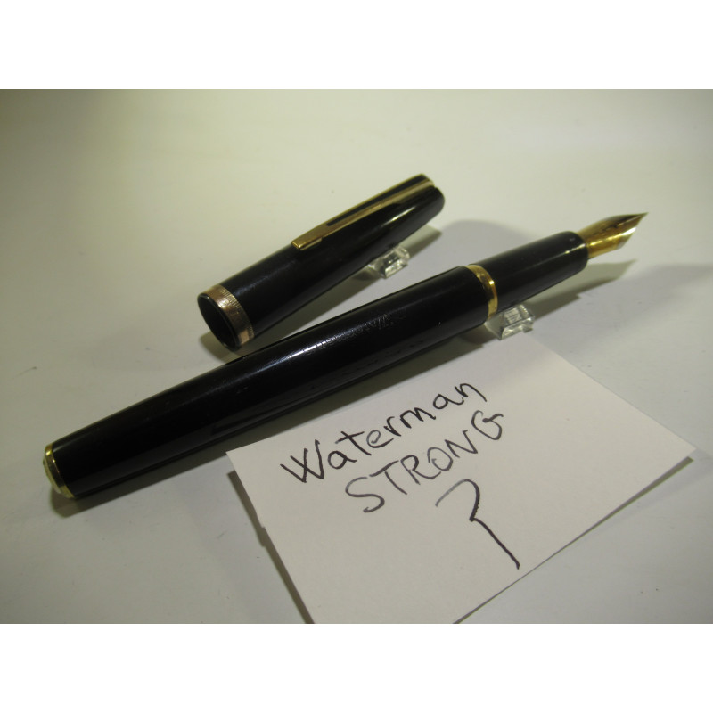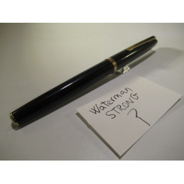 Stylo plume WATERMAN STRONG , ancêtre du MAN 100, plume or « WATERMAN – SUPER – 6 – 18 Carats », résine couleur noir. Livré avec un convertisseur et un joint d'adaptation en silicone de notre fabrication. Longueur avec capuchon 141mm, diamètre du corps 12.5mm. Livré avec 3 cartouches. Excellent état général, pour collection ou pour écrire.