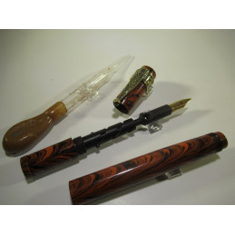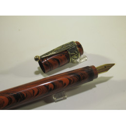 Stylo plume WATERMAN 42, plume or rentrante « WATERMAN’S – IDEAL - REG. US - PAT. OFF. - 2 – US AMERICA », en ébonite noire et rouge, marquage sur le corps du stylo « WATERMAN’S – REG. US - IDEAL – PAT. OFF. - FOUNTAIN PEN » et « WATERMAN’S – REG. US - IDEAL – PAT. OFF. – MADE IN USA », très bon état général, fonctionnement de la vrille parfait. Sur le capuchon il y a une agrafe en bronze motif « dragon ». Livré avec son étui d’origine, sa notice d’utilisation et une pipette de remplissage dont le caoutchouc est sec. Pour collection. Sans garantie pour utilisation.