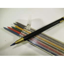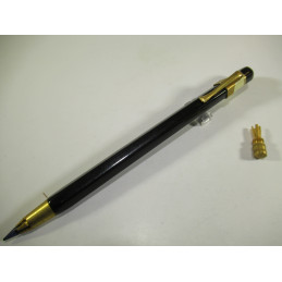 Porte-mine BOHEMIA WORKS, fabriqué en Tchécoslovaquie, marquage sur le corps « CZECHOSLOVAKIA - BOHEMIA WORKS – TOISON D’OR – VERSATIL : 5905 », neuf et n’ayant jamais été utilisé, longueur : 145 mm, fonctionnement parfait, livré dans sa boite d’origine avec sa notice et avec 1 étui de mines de diamètre 3.3 mm de couleurs assorties. Excellent état général, pour collection ou pour écrire.