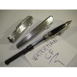 Stylo plume WATERMAN CF avec convertisseur fourni, plume or « 18 K – 750 », moiré couleur argent, très bon état général, pour collection ou pour écrire.