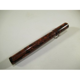 Stylo plume safety français marque ZODIAC, en ébonite rouge et noire, fabriqué par la société LA PLUME D’OR qui fabriqua aussi sous la célèbre marque METEORE. Mécanisme fonctionnel, plume or « PARIS – GARANTI - 18 Cts – 15 ». Marquage sur le corps « ZODIAC – UNIS France » et « S 3 ½ », longueur fermé 108 mm, diamètre capuchon 12.5 mm, très bon état général, pour collection. Sans garantie pour être utilisé.