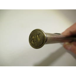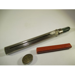 Very rare, french case carries sealing wax. A sliding zipper along the barrel allows the wax stick to come out. After melting the wax and depositing it on the paper, the end of the case is equipped with an engraved seal "M G". Retracted wax stick length: 124 mm. Comes with a green wax stick inside the case and a spare red stick. Very good general condition. For collection or for use.