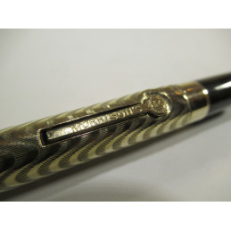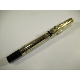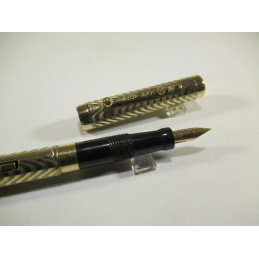 MORRISON american fountain pen, in black ebonite, gold plated overlay, closed cap length 132 mm, cap diameter 12 mm, 18K gold nib “WARRANTED – 18 CT – 1st QUALITY”, functional lever filling system, no sac inside, marking on the lever and on the clip "MORRISON'S", good general condition, without guarantee to be used, for collection.